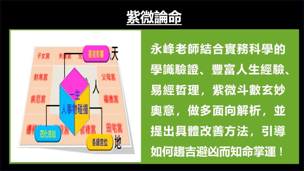 - 紫微個人論命 – 以新天地人架構,提出個人行運氣數之命理解析與解決方案